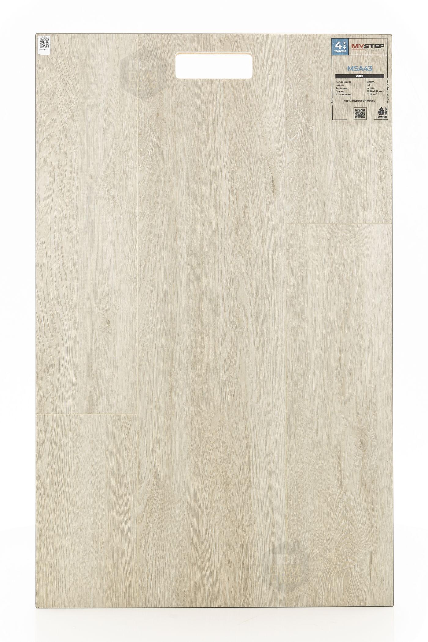 SPC ламинат My Step Одер MSA43 - цена 2 690 руб. за квадратный метр. Это покрытие толщиной 4 мм, порода дерева - дуб, фаска с 4-х сторон. Тиснение поверхность SPC ламината имеет светлый оттенок и матовый блеск. Для того, чтобы купить в Казани SPC ламинат из коллекции My Step Аква 4мм Одер MSA43, положите товар в корзину или свяжитесь с нами любым доступным способом. Товар есть в наличии.