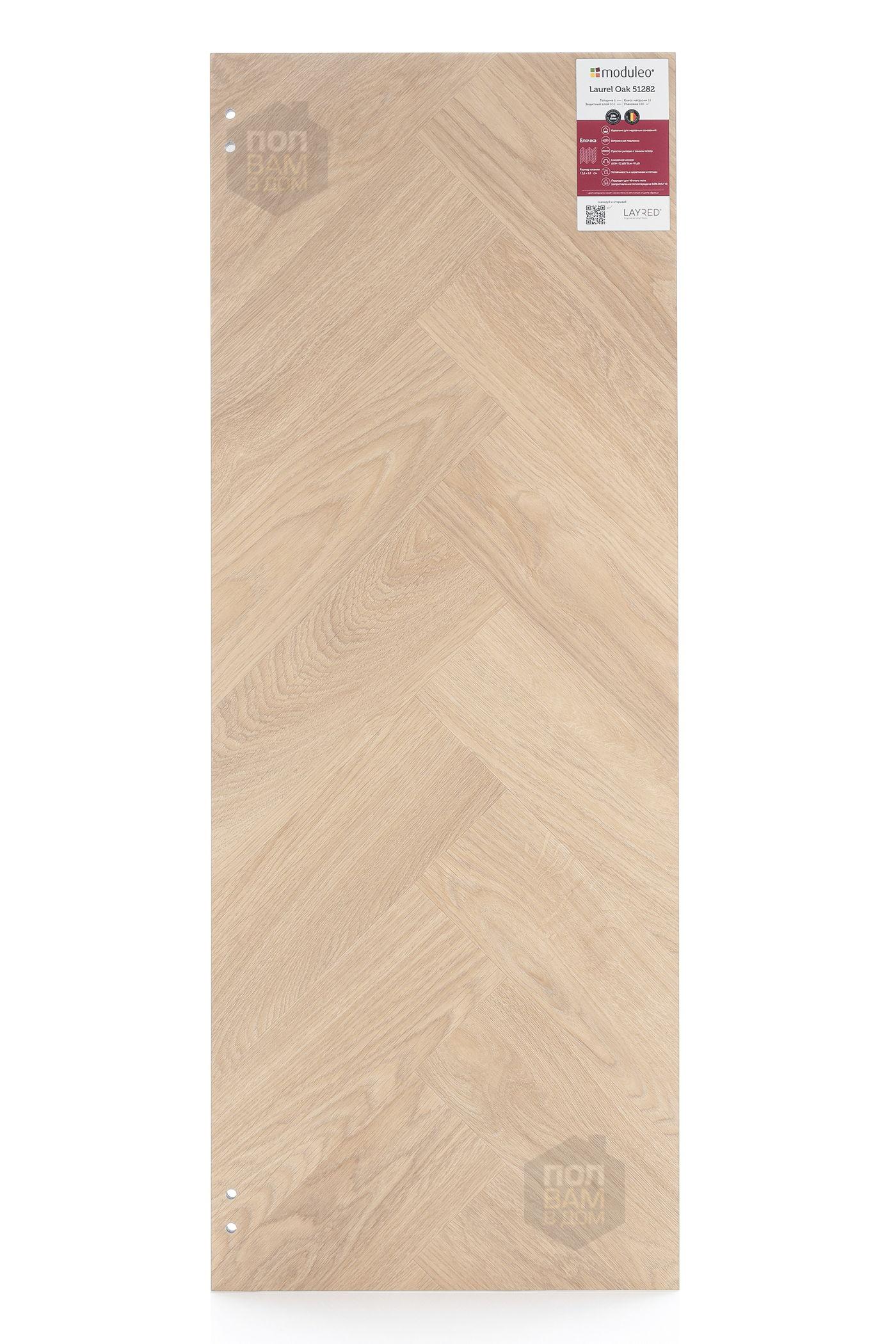 Виниловый ламинат Moduleo Laurel Oak 51282 - цена 4 760 руб. за квадратный метр. Это покрытие толщиной 6 мм, порода дерева - дуб, фаска с 4-х сторон. Брашированная поверхность винилового пола имеет светлый оттенок и матовый блеск. Для того, чтобы купить в Казани виниловый ламинат из коллекции Moduleo LayRed Herringbone Laurel Oak 51282, положите товар в корзину или свяжитесь с нами любым доступным способом. Товар есть в наличии.