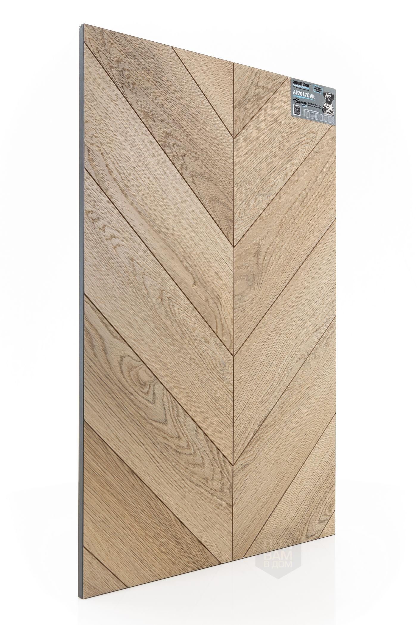 Виниловый ламинат Aquafloor AF7017CVR - цена 6 700 руб. за квадратный метр. Это покрытие толщиной 6,5 мм, порода дерева - дуб, фаска с 4-х сторон. Брашированная поверхность винилового пола имеет светлый оттенок и матовый блеск. Для того, чтобы купить в Казани виниловый ламинат из коллекции Aquafloor Chevron Premium AF7017CVR, положите товар в корзину или свяжитесь с нами любым доступным способом. Товар есть в наличии.