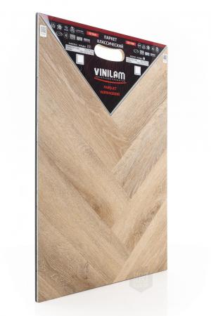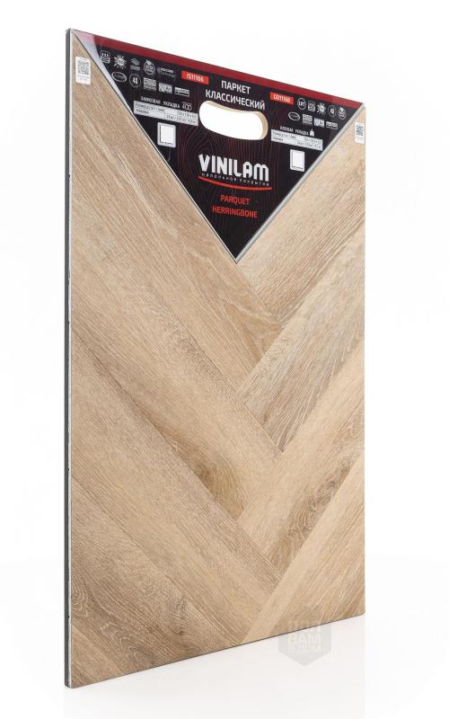 Виниловый ламинат Vinilam - это современное и надежное напольное покрытие, обладающее превосходными эксплуатационными и эстетическими характеристиками. Производится напольное покрытие в Китае, основой является прочный винил, имеющий верхнюю часть с фактурой натуральной древесины или камня. Ассортимент насчитывает более 80 декоров, среди которых есть декоры елочки. Виниловый ламинат Vinilam имеет 43 класс нагрузки и идет в толщине 2,5 мм. Материал обладает ударопрочностью, устойчивостью к царапинам и другим механическим повреждениям. Легко переносит температурные и химические воздействия. Монтаж допустим не только в жилых помещениях, но и во влажных, например, санузлах.