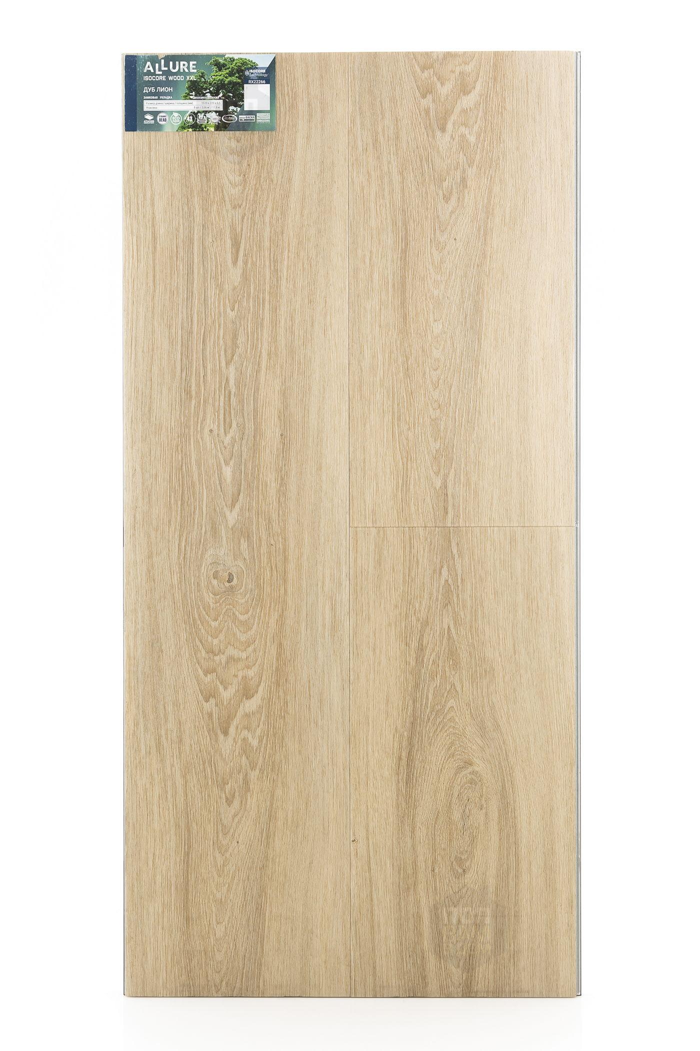 SPC ламинат Allure Vinilam Дуб Лион RX22266 - цена 4 299 руб. за квадратный метр. Это покрытие толщиной 6,5 мм, порода дерева - дуб, фаска с 4-х сторон. Брашированная поверхность SPC ламината имеет светлый оттенок и матовый блеск. Для того, чтобы купить в Казани SPC ламинат из коллекции Allure Vinilam Isocore Wood XXL Дуб Лион RX22266, положите товар в корзину или свяжитесь с нами любым доступным способом. Товар есть в наличии.
