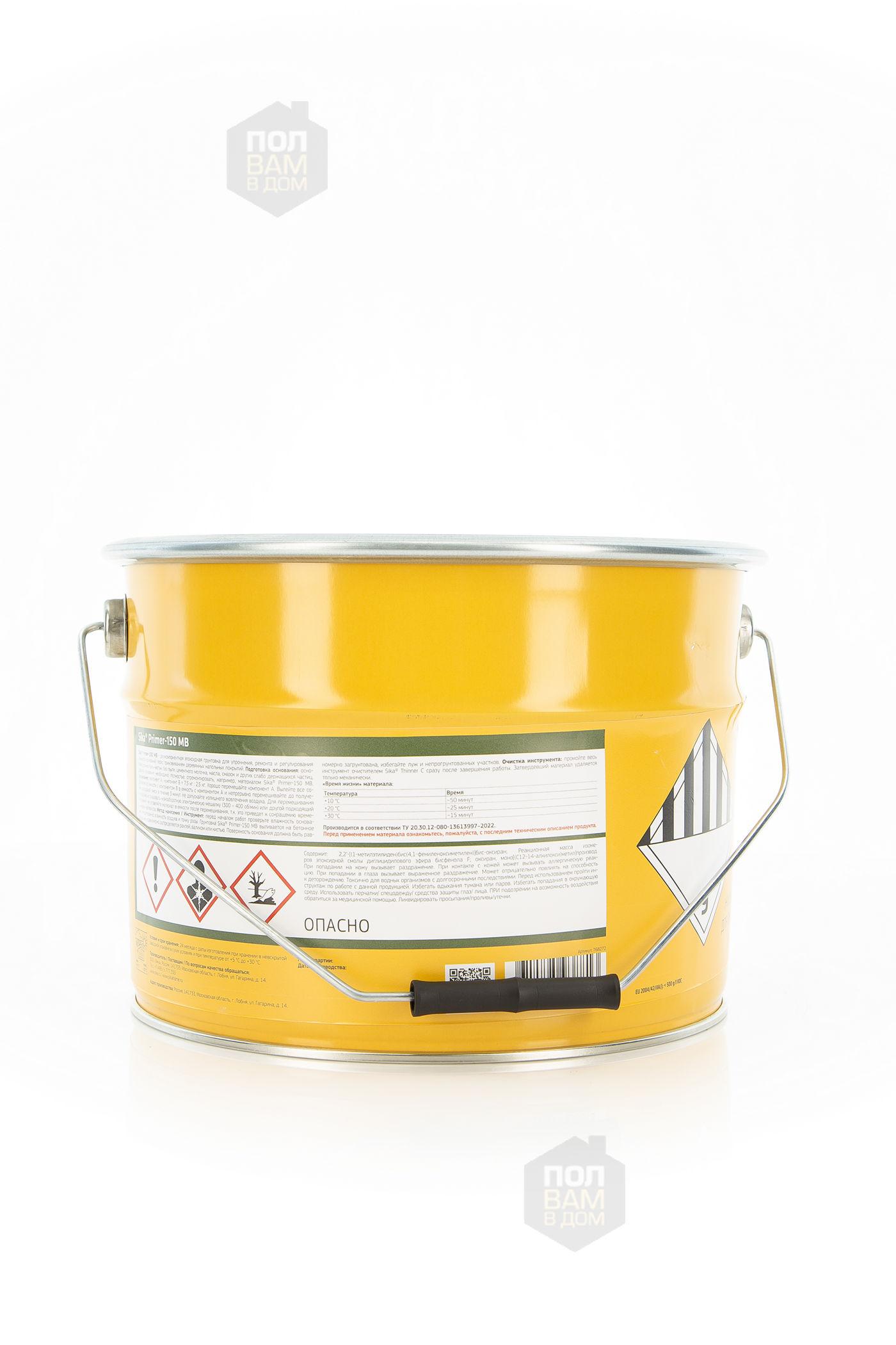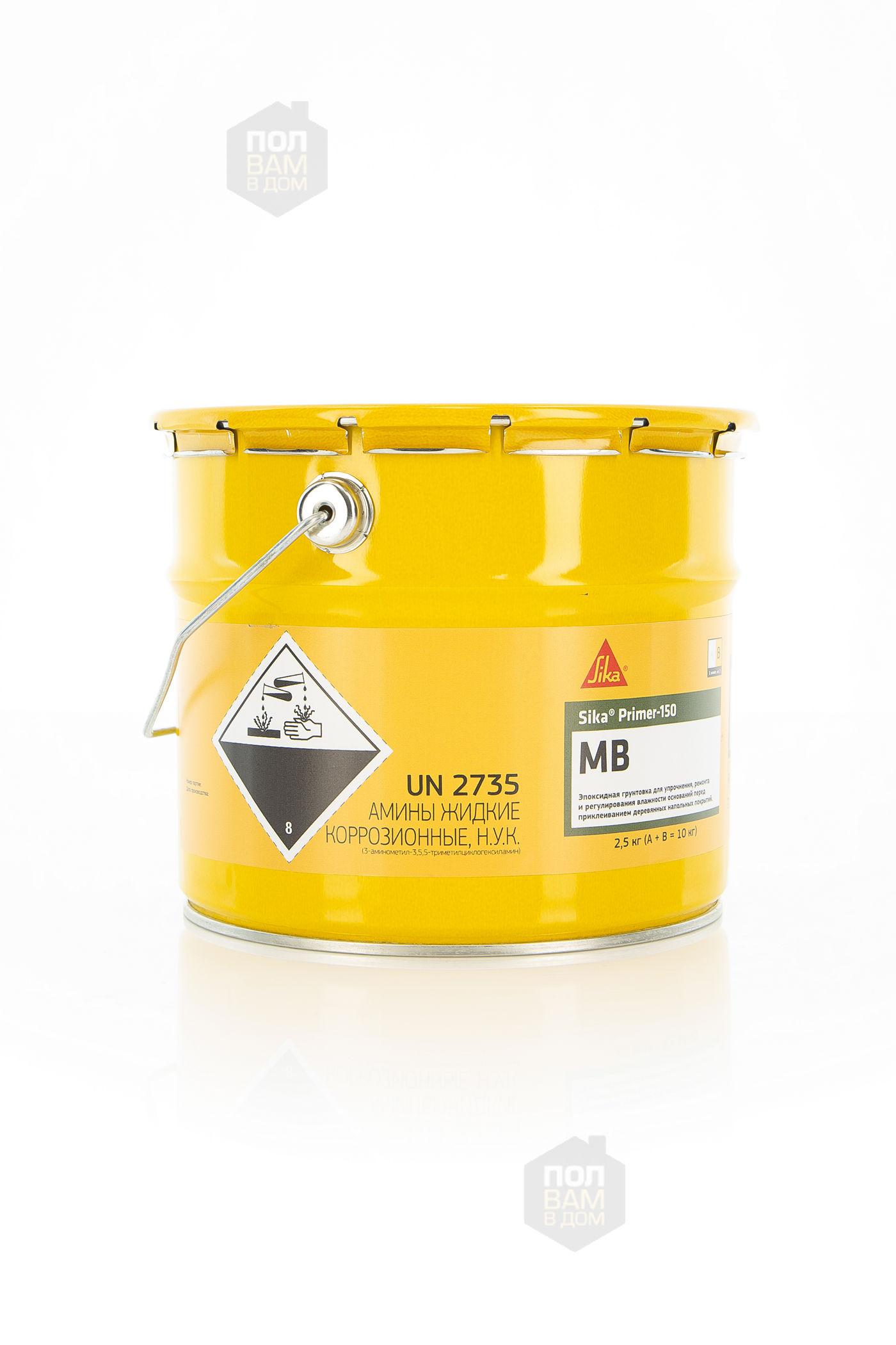 Sika Primer-150 MB - двухкомпонентный, не содержащий растворителей, маловязкий грунтовочный материал на основе эпоксидной смолы, использующийся вместе с эластичными клеевыми материалами SikaBond при укладке деревянных напольных покрытий на влажные (≤ 6% СМ) и недостаточно прочные основания.