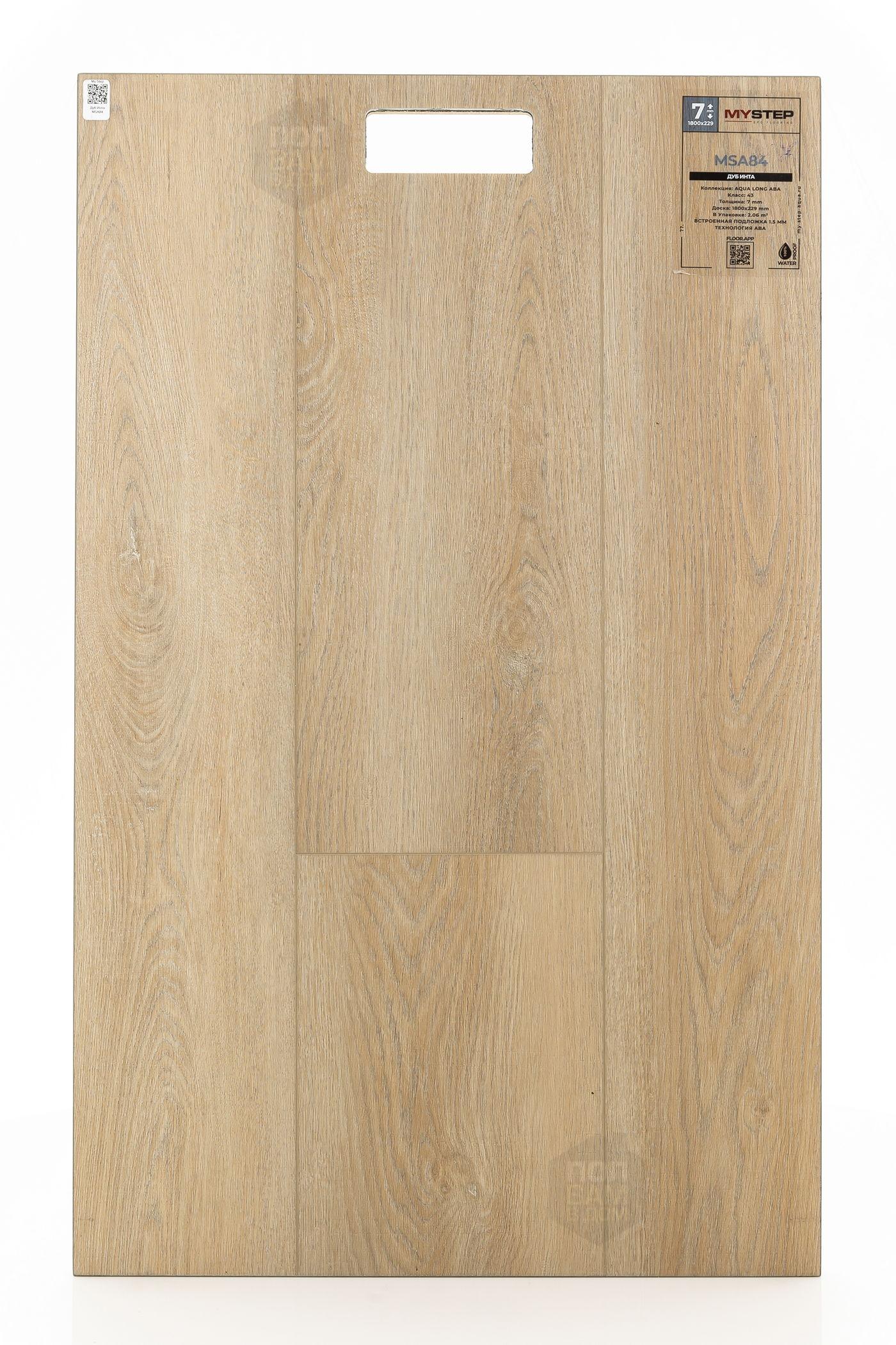 SPC ламинат My Step Дуб Инта MSA84 - цена 4 490 руб. за квадратный метр. Это покрытие толщиной 7 мм, порода дерева - дуб, фаска с 4-х сторон. Тиснение поверхность SPC ламината имеет светлый оттенок и матовый блеск. Для того, чтобы купить в Казани SPC ламинат из коллекции My Step Аква Лонг АВА Дуб Инта MSA84, положите товар в корзину или свяжитесь с нами любым доступным способом. Товар есть в наличии.