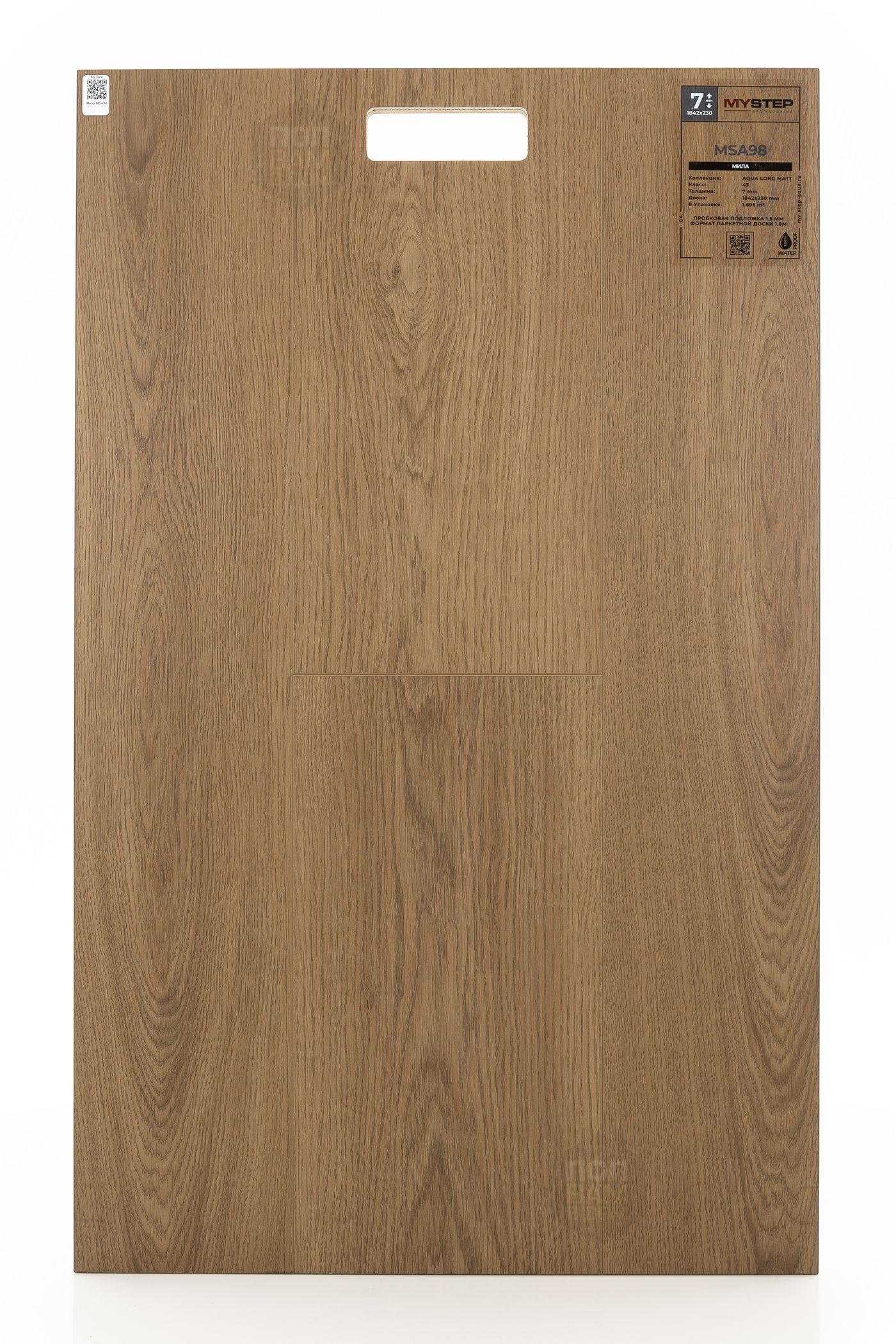 SPC ламинат My Step Мила MSA98 - цена 4 990 руб. за квадратный метр. Это покрытие толщиной 7 мм, порода дерева - дуб, фаска с 4-х сторон. Тиснение поверхность SPC ламината имеет светлый оттенок и ультраматовый блеск. Для того, чтобы купить в Казани SPC ламинат из коллекции My Step Аква Лонг Матт Мила MSA98, положите товар в корзину или свяжитесь с нами любым доступным способом. Товар есть в наличии.