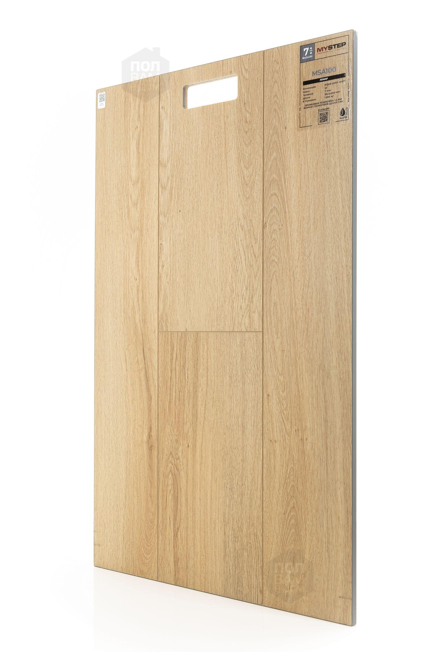 SPC ламинат My Step Лунар MSA100 - цена 4 990 руб. за квадратный метр. Это покрытие толщиной 7 мм, порода дерева - дуб, фаска с 4-х сторон. Тиснение поверхность SPC ламината имеет светлый оттенок и ультраматовый блеск. Для того, чтобы купить в Казани SPC ламинат из коллекции My Step Аква Лонг Матт Лунар MSA100, положите товар в корзину или свяжитесь с нами любым доступным способом. Товар есть в наличии.