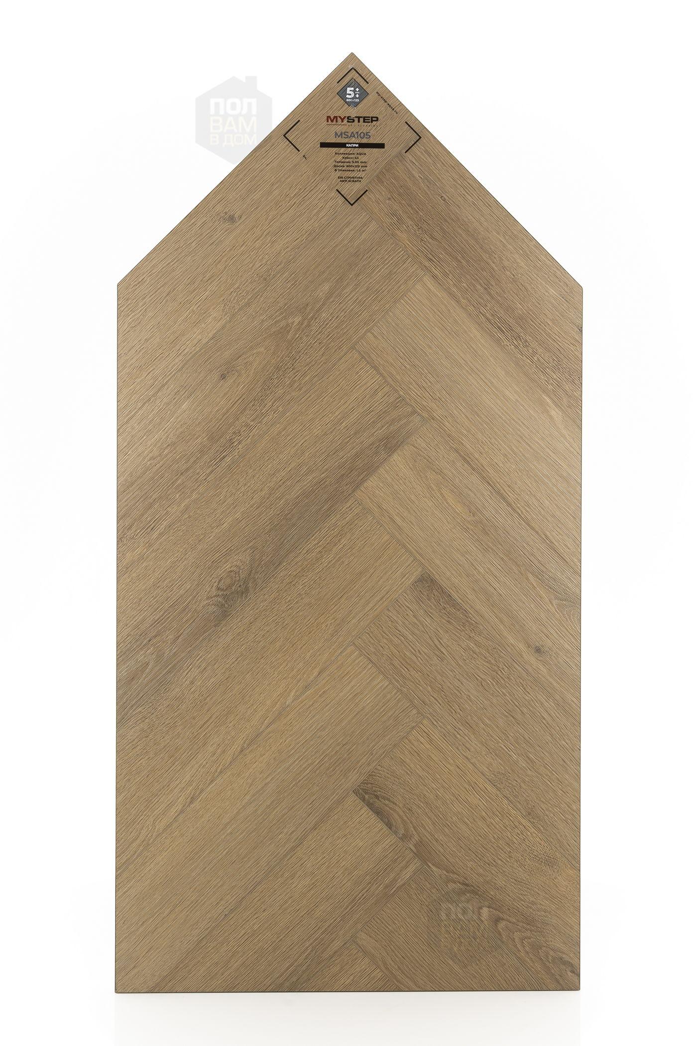SPC ламинат My Step Капри MSA105 - цена 3 590 руб. за квадратный метр. Это покрытие толщиной 5 мм, порода дерева - дуб, фаска с 4-х сторон. Тиснение поверхность SPC ламината имеет светлый оттенок и матовый блеск. Для того, чтобы купить в Казани SPC ламинат из коллекции My Step Аква 5,05мм Капри MSA105, положите товар в корзину или свяжитесь с нами любым доступным способом. Товар есть в наличии.