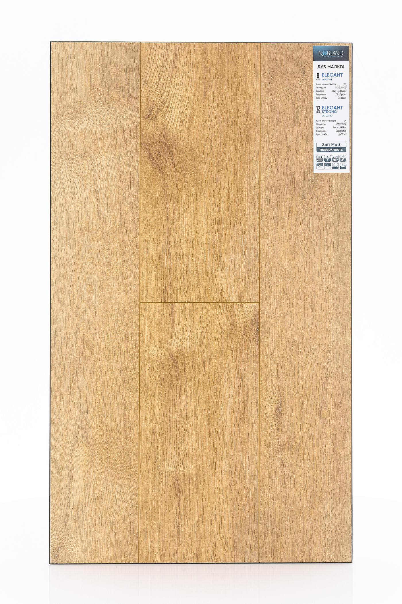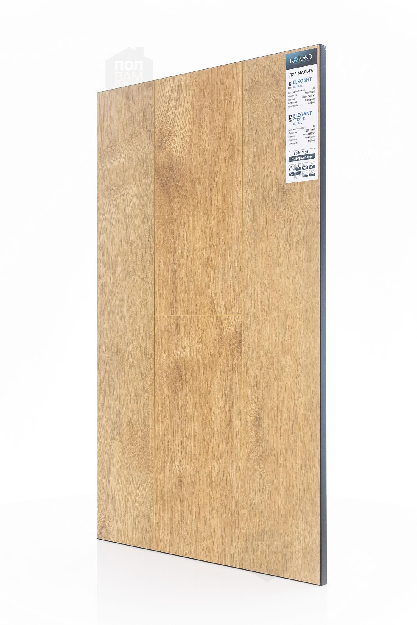 Ламинат Norland Дуб Мальта LF301-12 - цена 1 490 руб. за квадратный метр. Это покрытие толщиной 8 мм, порода дерева - дуб, фаска с 4-х сторон. Брашированная поверхность ламината имеет светлый оттенок и матовый блеск. Для того, чтобы купить в Казани ламинат из коллекции Norland Elegant Дуб Мальта LF301-12, положите товар в корзину или свяжитесь с нами любым доступным способом. Товар есть в наличии.