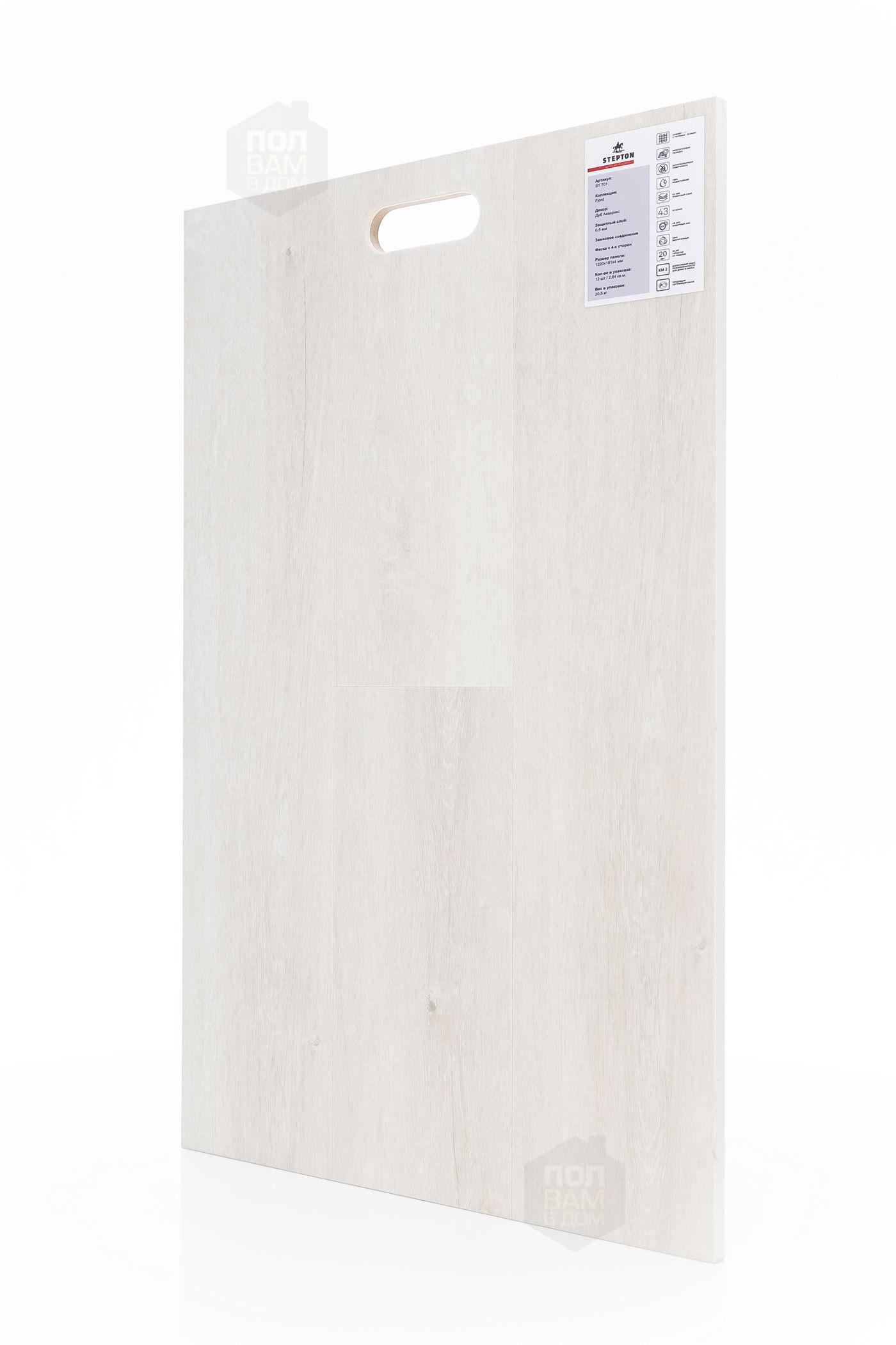 SPC ламинат Stepton Дуб Акварикс 701 - цена 1 850 руб. за квадратный метр. Это покрытие толщиной 4 мм, порода дерева - дуб, фаска с 4-х сторон. Брашированная поверхность SPC ламината имеет светлый оттенок и матовый блеск. Для того, чтобы купить в Казани SPC ламинат из коллекции Stepton Fjord Дуб Акварикс 701, положите товар в корзину или свяжитесь с нами любым доступным способом. Товар есть в наличии.