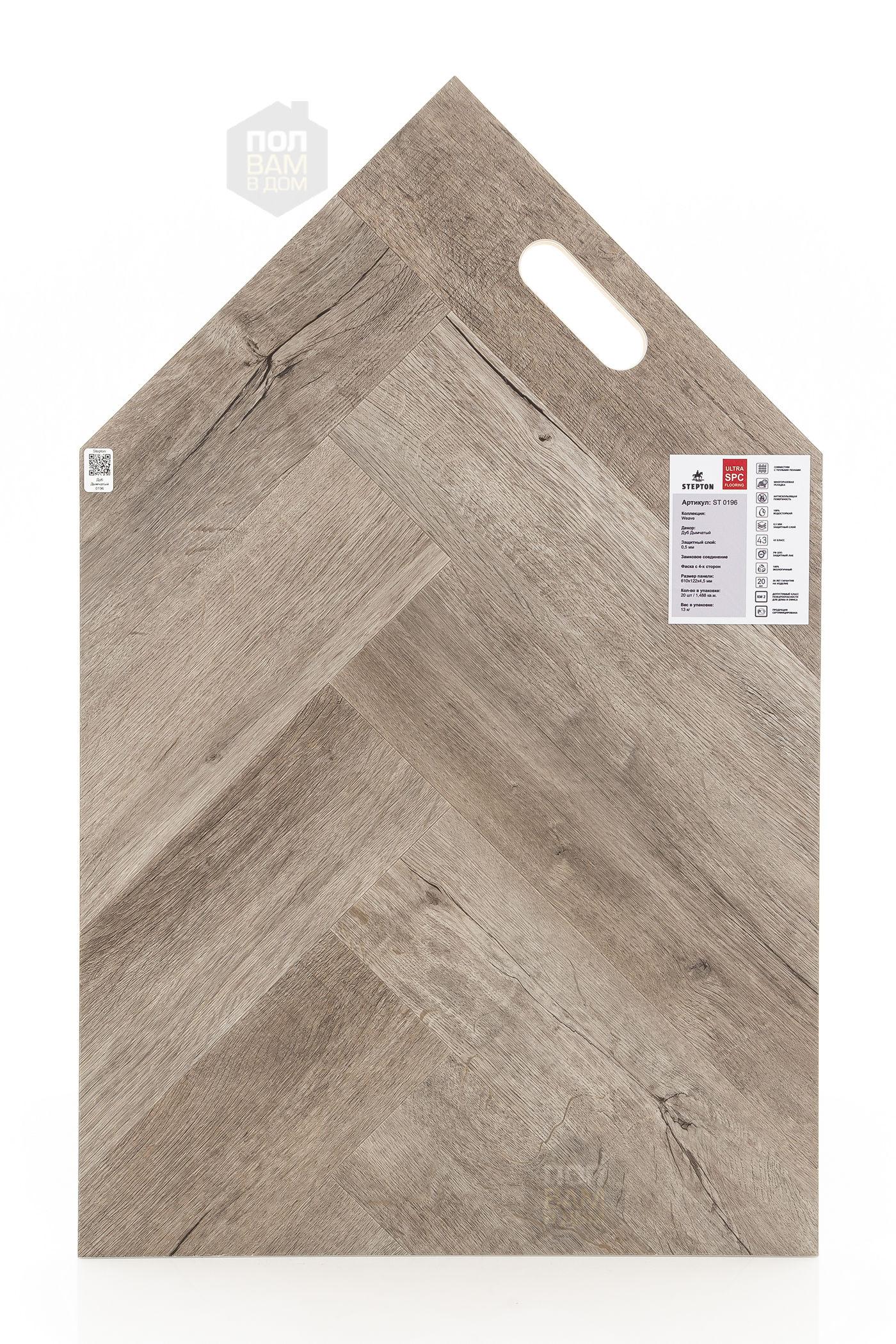 SPC ламинат Stepton Дуб Дымчатый 0196 - цена 2 350 руб. за квадратный метр. Это покрытие толщиной 4,5 мм, порода дерева - дуб, фаска с 4-х сторон. Брашированная поверхность SPC ламината имеет тёмный оттенок и матовый блеск. Для того, чтобы купить в Казани SPC ламинат из коллекции Stepton Weave Дуб Дымчатый 0196, положите товар в корзину или свяжитесь с нами любым доступным способом. Товар есть в наличии.