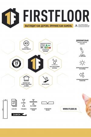 SPC ламинат FirstFloor — разрабатывался специально для стран Европы и Америки и имеет большую популярность на этих континентах. Более 20 лет насчитывает история его успешных продаж и эксплуатации. Ежегодно производится и продается более 100 000 000 квадратных метров. Теперь этот продукт можно приобрести и у нас. Идеальное сочетание характеристик, пользовательских качеств и одновременно элегантности в совокупности с ценой, делают наш SPC ламинат максимально привлекательным к покупке. Его поверхность словно дерево, а устойчивость к нагрузкам — как у камня. С классом износостойкости 43, он способен противостоять даже самым интенсивным воздействиям. его можно использовать во всех бытовых помещениях без исключения. Гарантия на 20 лет подчеркивает наше доверие в надежность и качество этого покрытия.