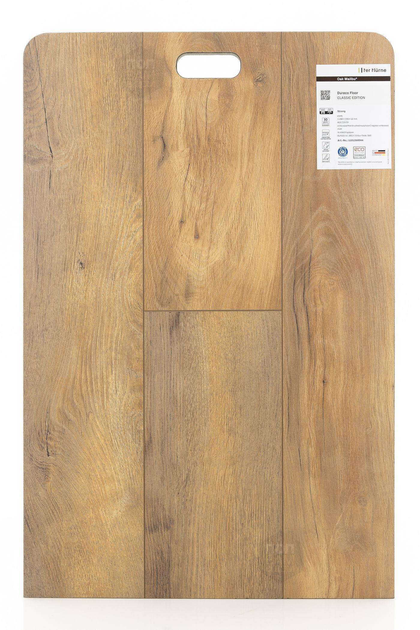 Ламинат TerHurne Дуб Малибу 2813 - цена 4 650 руб. за квадратный метр. Это покрытие толщиной 12 мм, порода дерева - дуб, фаска с 4-х сторон. Брашированная поверхность ламината имеет светлый оттенок и матовый блеск. Для того, чтобы купить в Казани ламинат из коллекции TerHurne Dureco Classic Edition Дуб Малибу 2813, положите товар в корзину или свяжитесь с нами любым доступным способом. Товар есть в наличии.